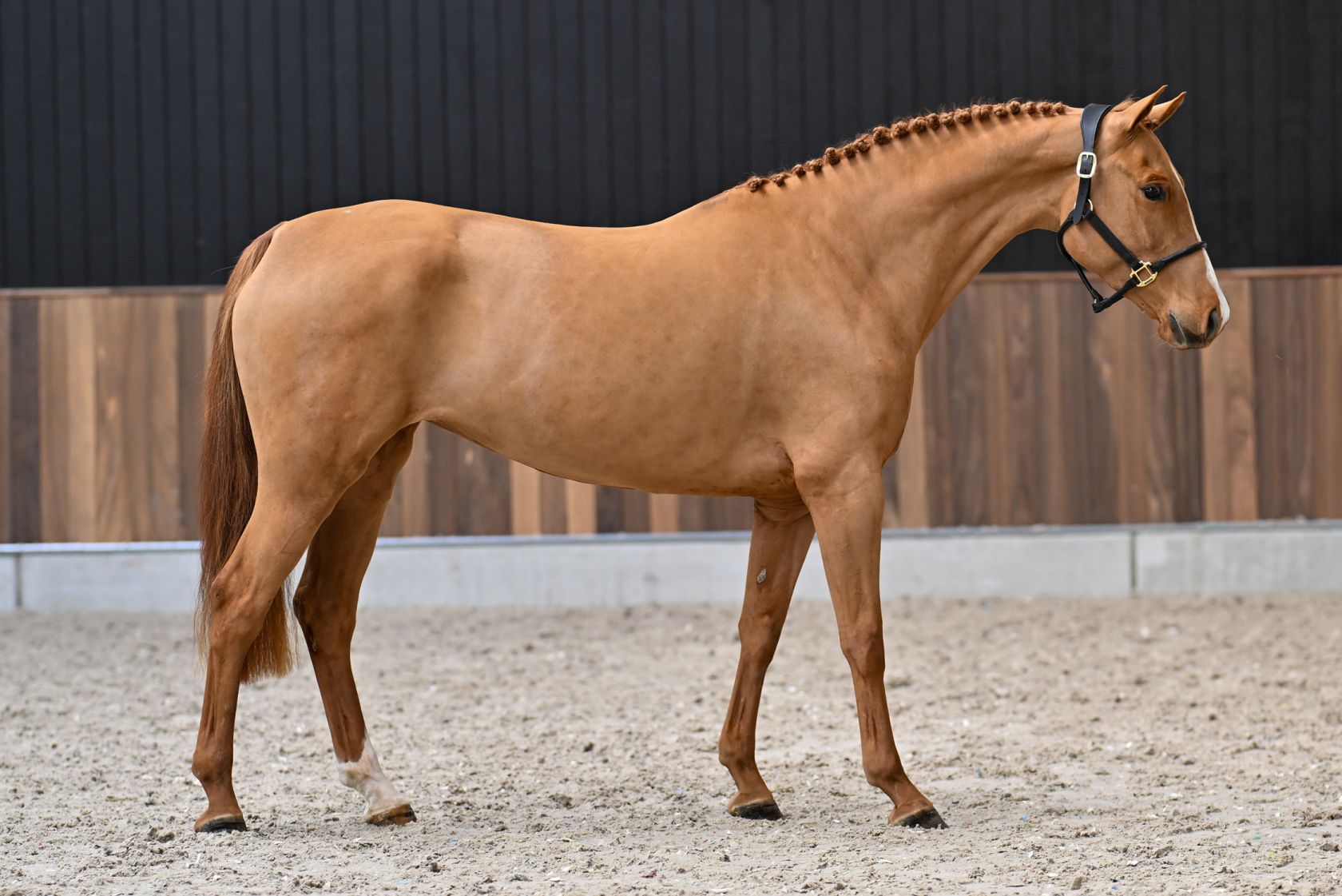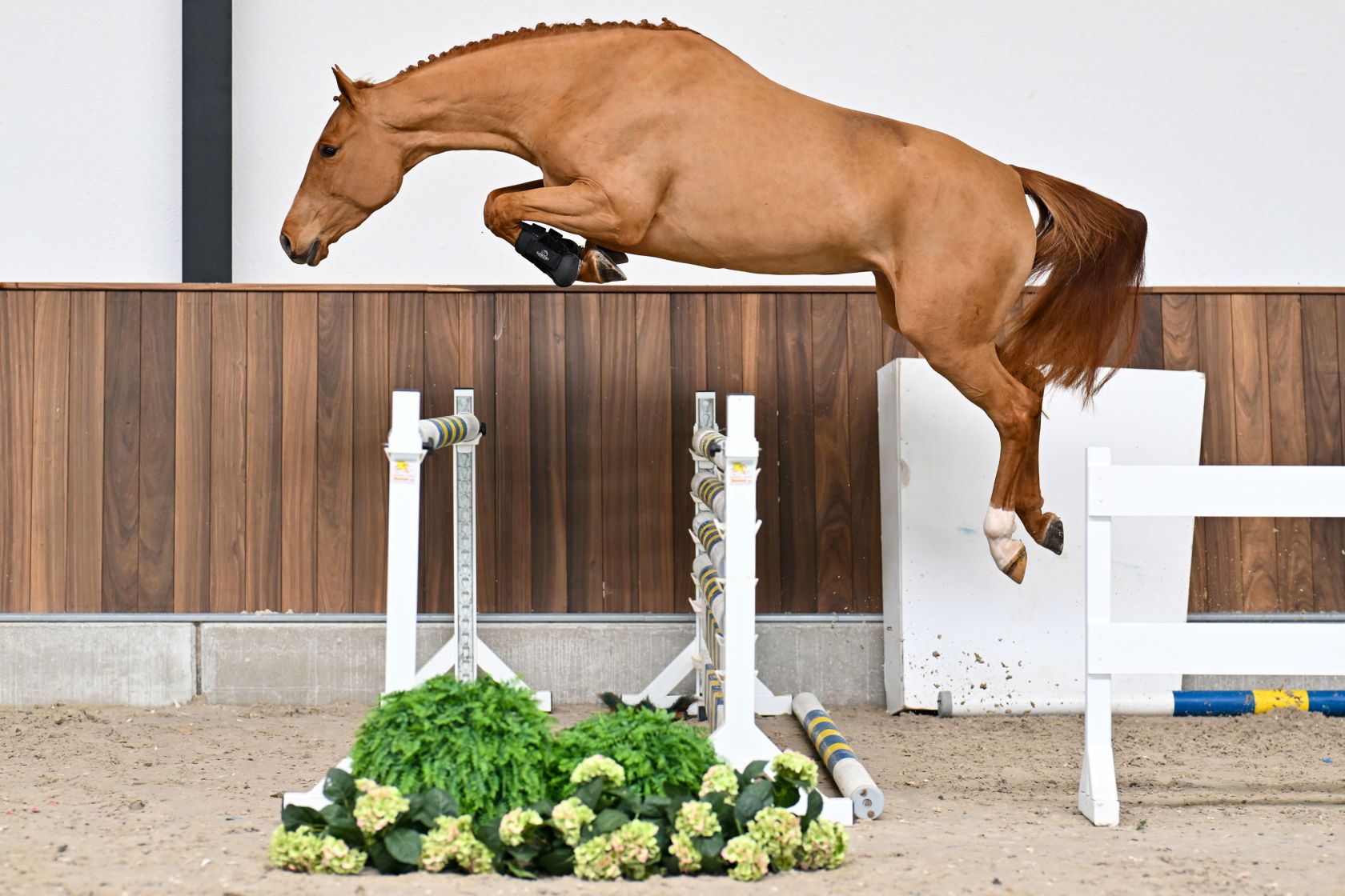 Surprise is a beautiful 4‑year‑old chestnut mare that jumps with great ease and confidence, showing quick reflexes and a sharp front leg. She is a sister to Line Karlsen Raaholt’s 1m50 jumper Cupido and is related to 1m55 jumping Hocus‑Pocus and Rosalind Canter’s legendary 5* eventer Zenshera.